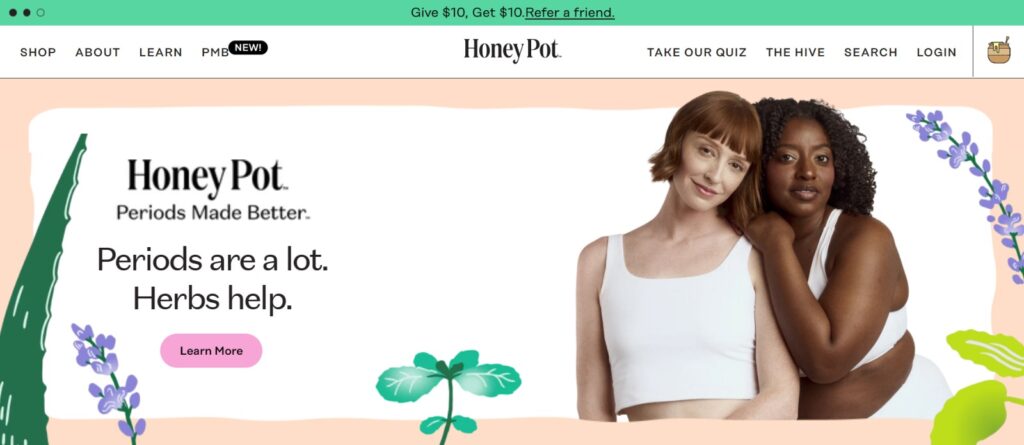 The Honey Pot is a modern feminine care brand focused on plant-based, safe ingredients for intimate wellness. Their mission is rooted in transparency, community, and holistic self-care.